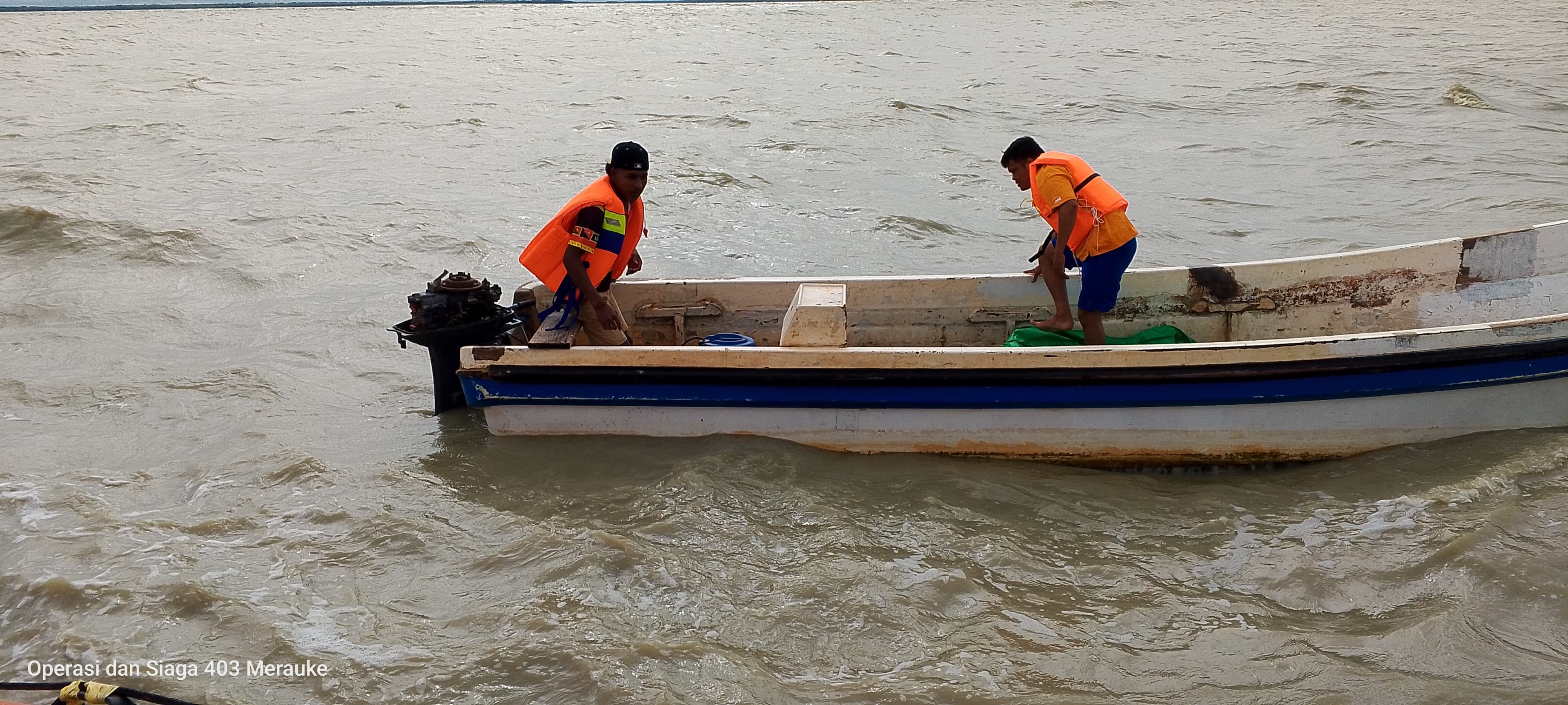 Berbekal laporan tersebut, pukul 08.10 wit tim penolong dengan mempergunakan Rigid Inflatable Boat berangkat menuju ke lokasi kejadian untuk melakukan upaya pencarian dan pertolongan. Kedua korban beserta speed boat yang mati mesin berhasil di temukan dan dilakukan upaya penarikan speed boat ke dermaga Yos Sudarso Merauke.